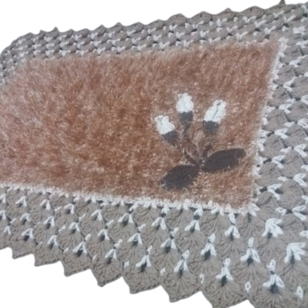 Sua casa vai ficar mais bonita com esse lindo tapete de crochê artesanal! tapete de crochê barroco decore e barbante soberano. o fio barroco natural tem toque e maciez incomparáveis. Possui composição 100% algodão em diferentes espessuras, para que você tenha mais qualidade e rendimento em seus projetos. Além disso, possui massa pura e fibras longas, o que garante uma durabilidade muito maior às suas artes manuais. O barroco decore luxo é um fio específico para quem procura sofisticação, modernidade e conforto na decoração dos seus ambientes. Os pelos mesclados e lisos proporcionam um efeito diferenciado para a peça, dando destaque em relação aos demais componentes do ambiente. largura: 53.00 cm comprimento: 82.00 cm peso: 900 g